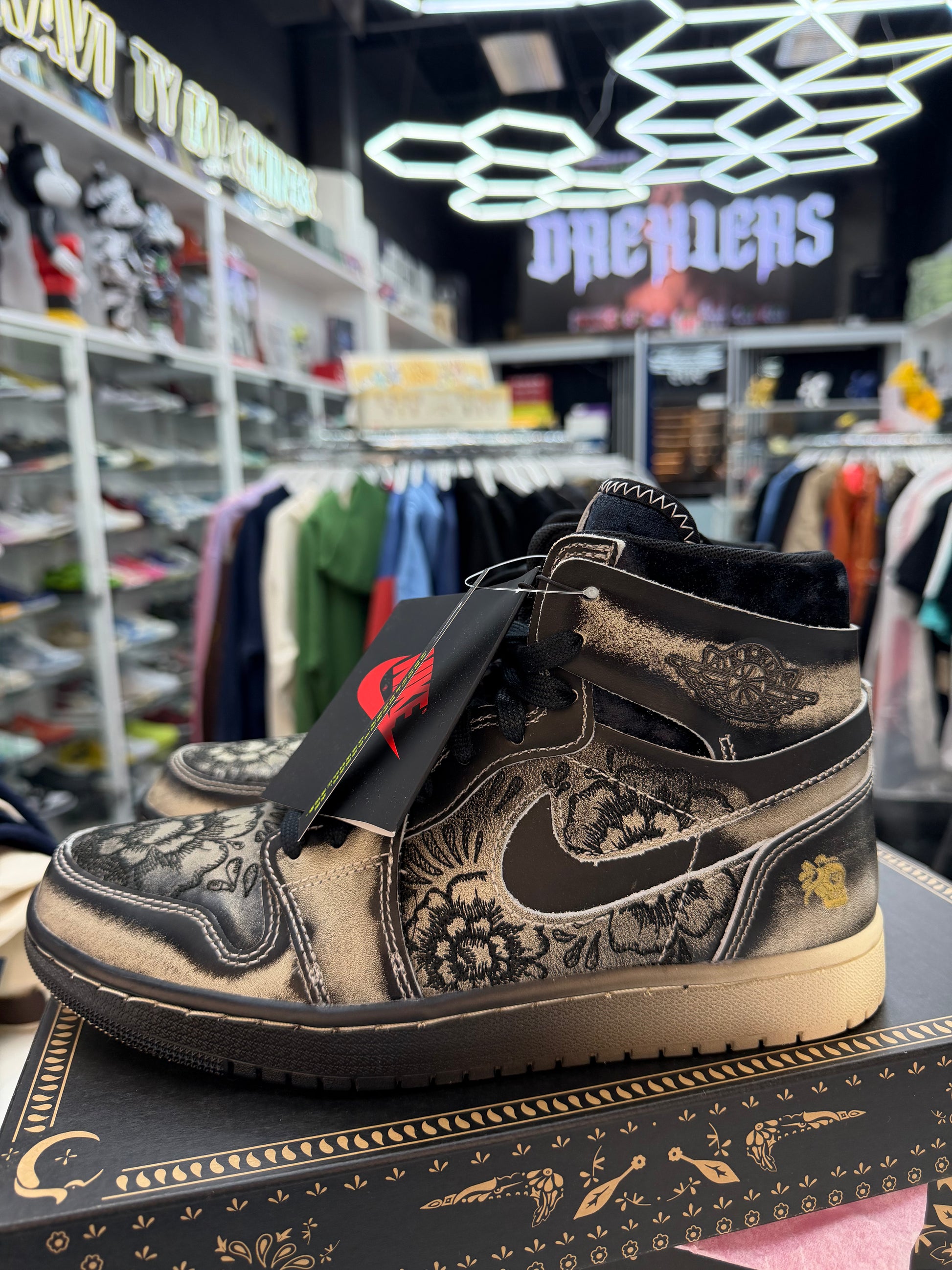 The Jordan 1 High Zoom Air CMFT 2 Día De Muertos is a tribute to the rich tradition and the Day of the Dead celebration. Its design encapsulates the vibrant and respectful spirit of Día De Muertos with color schemes that pay homage to the traditional Mexican holiday. The quality construction with classic Jordan 1 detailing makes it a comfortable yet stylish choice.