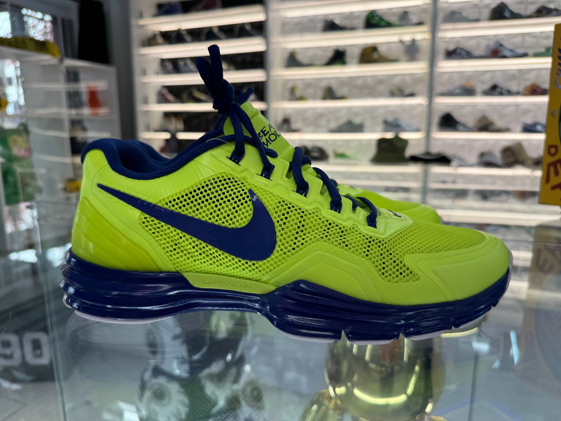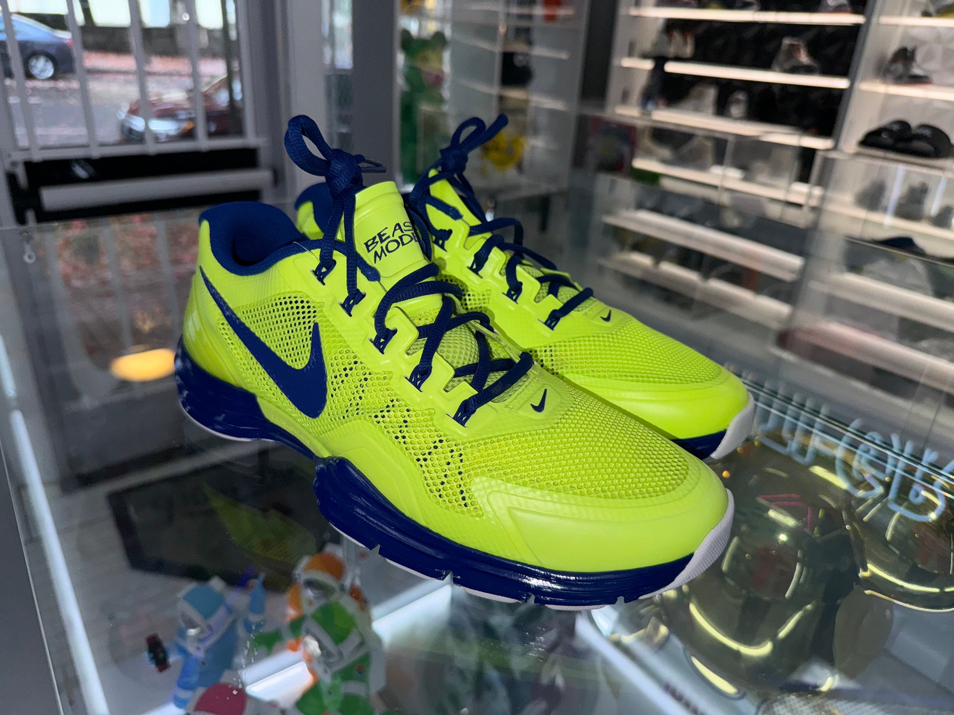 Made exclusively for Matt Kemp . These Nike lunars feature the LA logo inside and the Matt kemp beat mode phrase on them as well. Made for him while he was playing with the dodgers. They have only been tried on but bottoms are dirty from being displayed. Maybe worn 1x . Very good shape and rare.