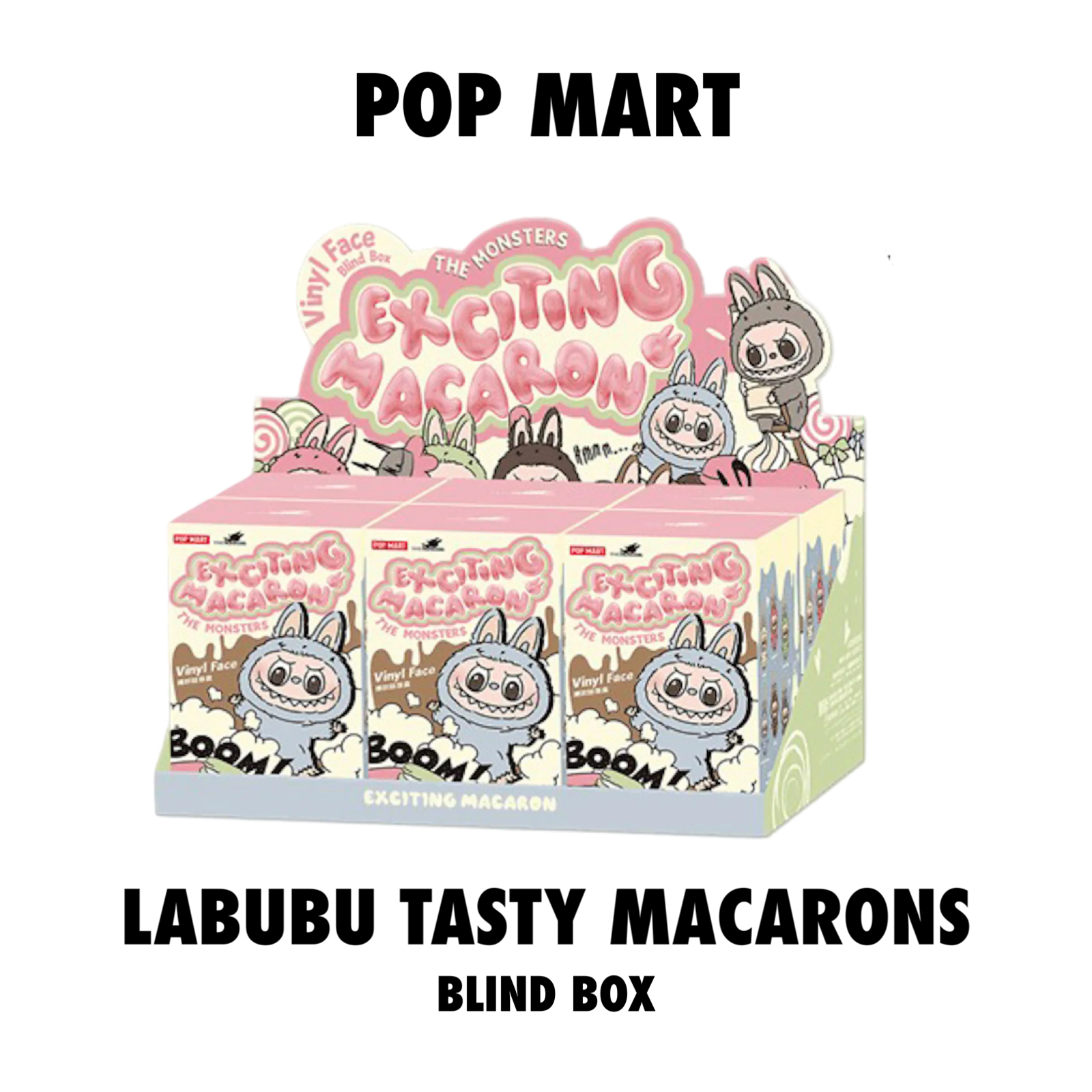 The Pop Mart Labubu The Monsters Tasty Macarons Vinyl Face Sealed Case includes six blind boxes, each containing a pendant-style figure of the beloved character Labubu from The Monsters.