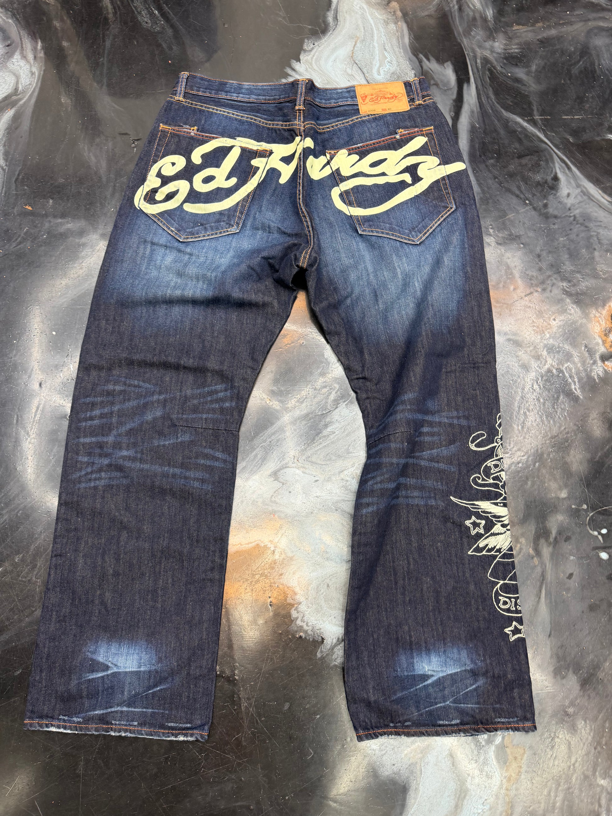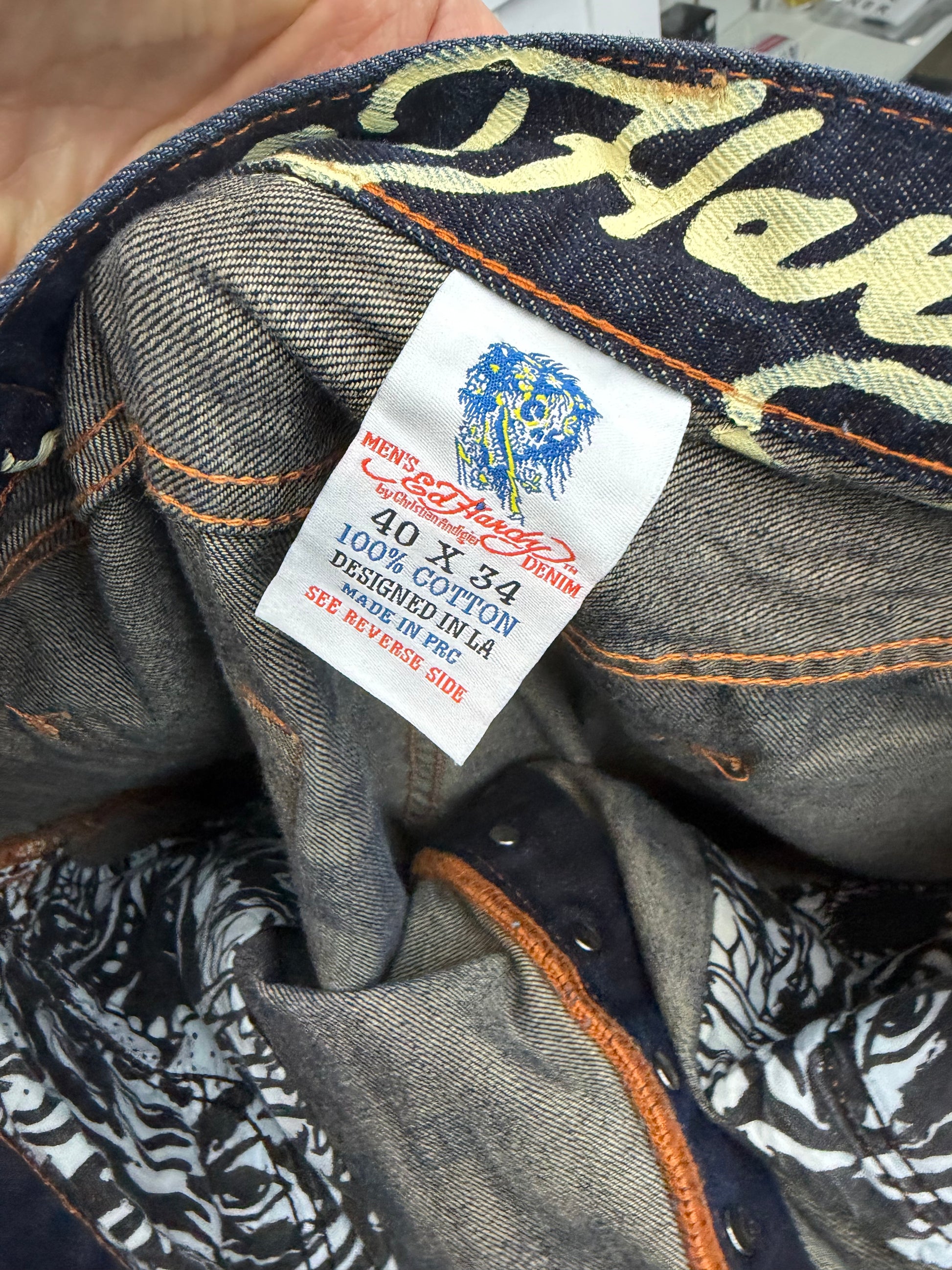Vintage Ed Hardy By Christian Audigier jeans Denim 40 X34 Wide Leg 2000’s